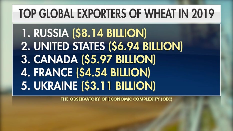 "A lot of ingredients come out of Ukraine, particularly wheat, oilseeds, barley and a number of other crops," MacKie told FOX Business. "The challenge is that that [region] is one of the top three wheat growing areas of the world. And if we're taking that out of production, which it looks like if the conflict goes much longer, that is going to happen. That's going to have a significant impact on the price of U.S. and Canadian wheat, which is what U.S. bakers primarily use."